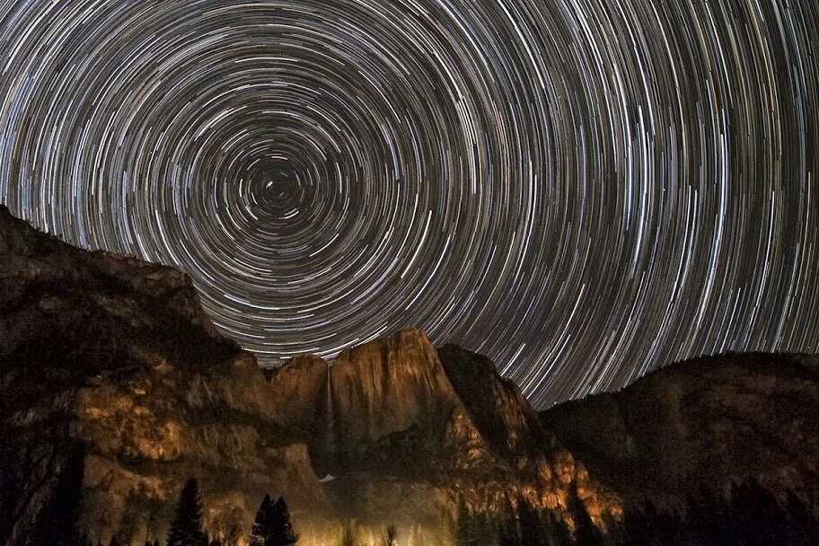 Star Trails show the rotation of the Earth around the North Star (Polaris). This one hour exposure was captured in Yosemite on a cold January night.