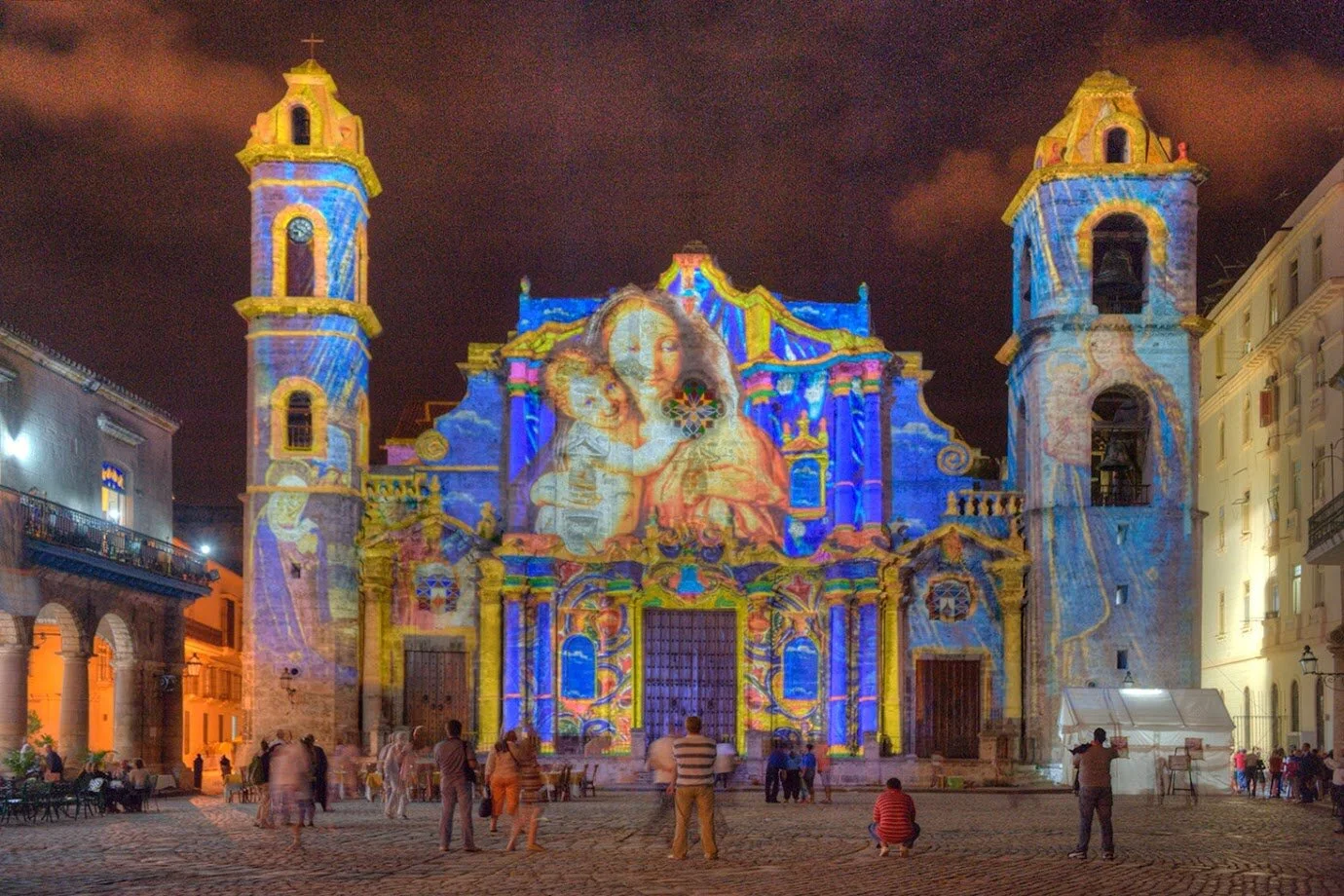 The Catedral de San Cristobal in Havana, Cuba was completed in 1777. For nearly 100 years, the remains of Christopher Columbus were kept here. On some evenings, the cathedral is illuminated with projected religious images. I was able to be there on one of those lucky nights in 2014.