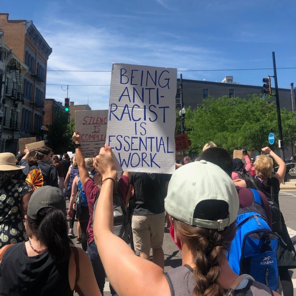 Along with my partner, Bobby, and several coworkers, I was able to participate in the Cincinnati March for Racial Justice, held downtown on Sunday, June 2. What an honor it was to walk alongside approximately four thousand other masked activists (and new friends), to peacefully protest racial injustices in our city and across the United States.