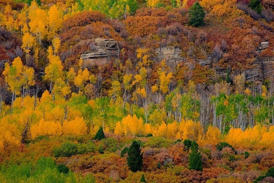 The compositional elements of this photo are color and texture. It was taken in the Abajo Mts of southeast Utah. Some of the best fall colors I have ever seen, but few people know about this area.