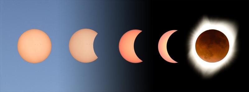 Member Keith Marsh (California, USA) had this to say:"Danielle, thanks for the program. You go girl.Here is my photo sequence of the partial to total solar eclipse as seen in northern Oregon." (Click the image below to see the full size.)